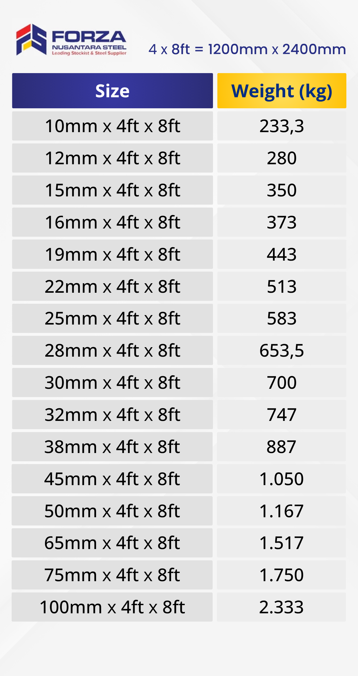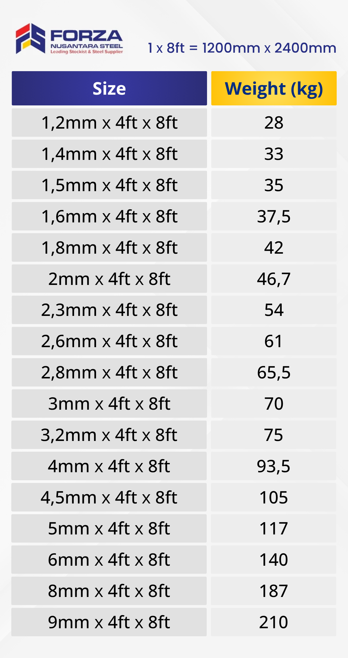 Forza Nusantara Steel menyediakan plat hitam dengan berbagai ukuran dan ketebalan yang sesuai dengan kebutuhan proyek konstruksi Anda. Kami menjamin kualitas produk besi plat hitam yang kami jual serta harga yang bersaing di pasaran.